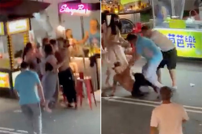 這時男子不滿朝大叔怒罵三字經,並且衝上前就靠年輕肉體給大叔一頓教訓,沒想到他酒精攝取太多根本站不穩,反倒被更多路過的大叔圍毆。而這位裸男的女友為了保護他,不停尖叫「寶貝寶貝~」也成為影片中特別亮點。