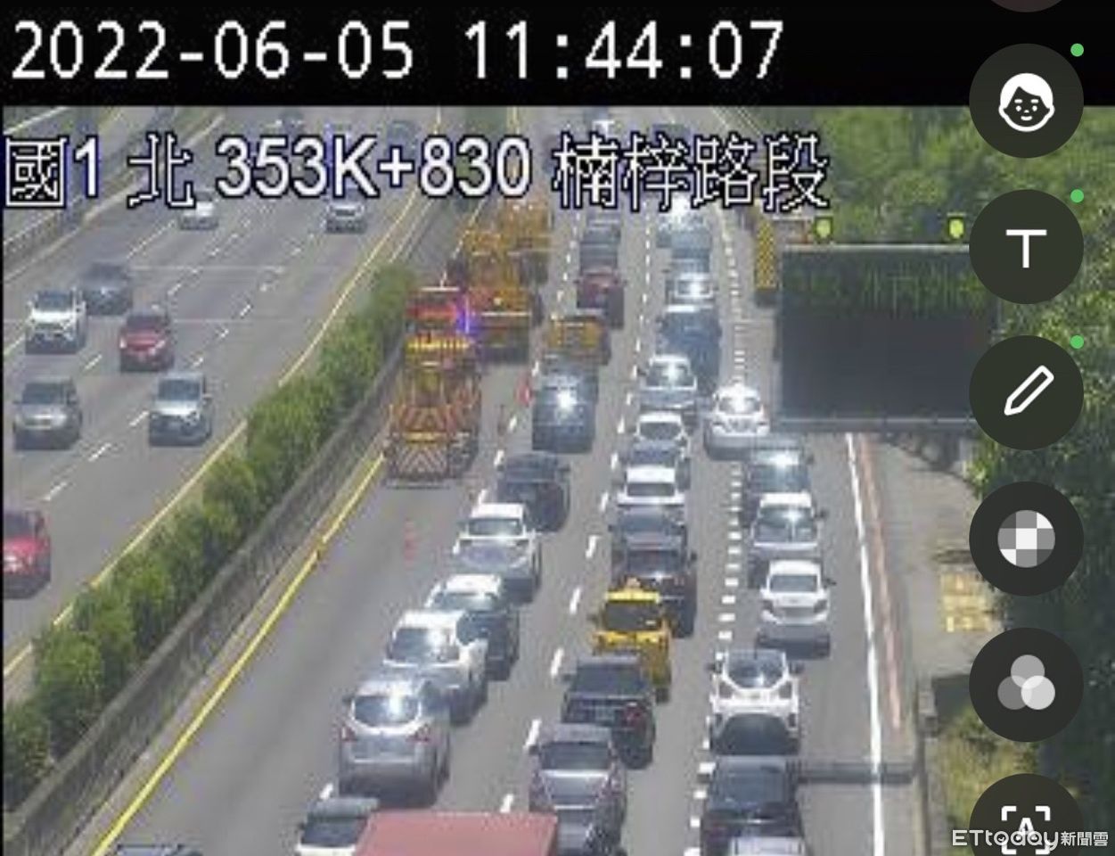 ▲國道楠梓北上路段今日上午11時發生車禍 。(圖/記者吳世龍翻攝)