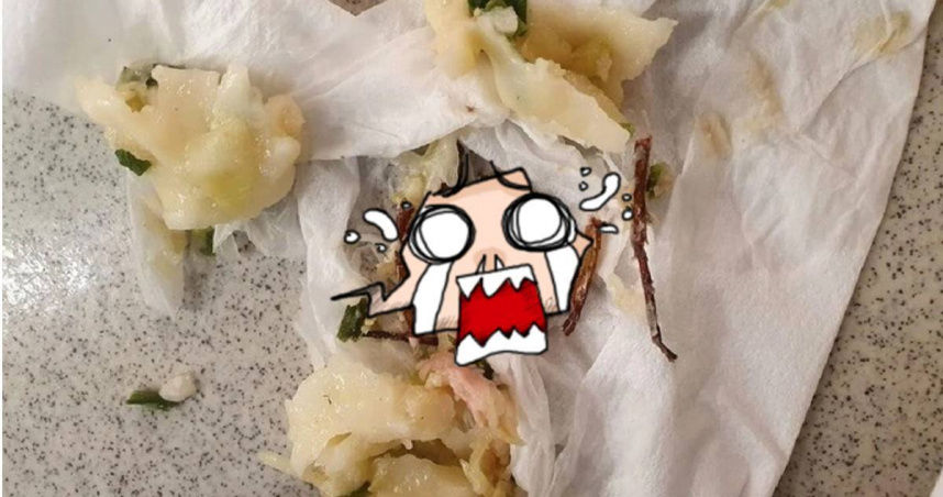 一名女網友中午到了基隆廟口附近去購買午餐湯餃,沒想到放進口中後,發現湯餃有奇怪的異物感,她吐出來後發現竟然是整隻完整大蟑螂,讓她整個嚇壞衝回店內反應,並把照片PO上網路,不少網友看到也都紛紛覺得太可怕。