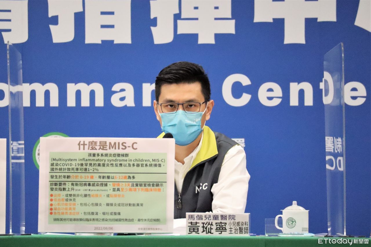 台大醫院小兒心臟科主治醫師林銘泰透露收治一名10歲男童4月底確診輕症康復後,在端午連假前出現兒童多系統發炎症候群(MIS-C),緊急搶救才救回一命。馬偕兒童醫院小兒感染科主治醫師黃瑽寧今也特別到指揮中心分享「6大警示症狀」,包括腹痛、腹瀉、皮膚出疹、嘔吐、眼睛充血和頭暈,提醒家長一定要特別留意。