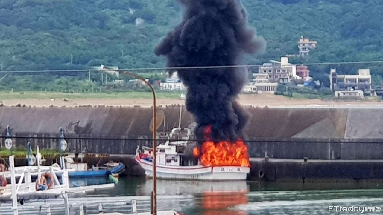 ▲▼金山磺港漁港火燒船。(圖/記者郭世賢翻攝)