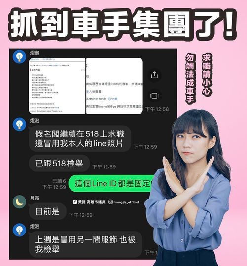 黃捷提醒,如果求職有遇到以上手法,請儘速撥打165或110查證,千萬不要提供任何身份證明文件或金錢,避免帳戶被凍結,求職不成反淪為車手。如果有民眾也是受害者,請務必跟她聯絡,會提供協助伸張正義,一起把誆騙百姓血汗錢的惡徒,送進大牢裡。