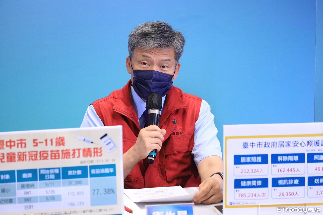 台中市兒童疫苗累計已經施打15萬123人,當中莫德納5月11日開始接種,到6月8日就滿4周。台中市衛生局長曾梓展今天在記者會上公布,兒童疫苗施打間距預計縮短至4到8周,台中市已經規劃好醫療院所、學校、大型快打站等方式「3箭齊發」,等中央一宣布開打時間,就能幫5到11歲孩子打疫苗。