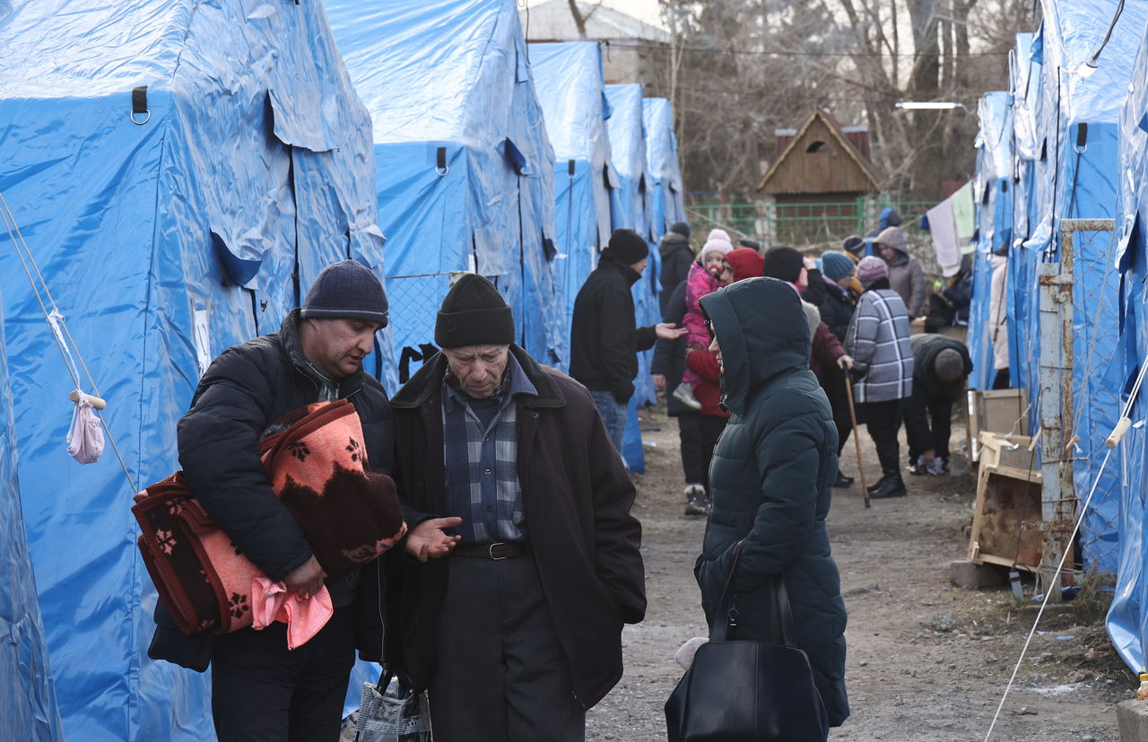 ▲部份烏克蘭民眾在煙硝戰火中只能選擇入境俄羅斯,俄人在烏東頓涅茨克州巴齊米納(Bezimenne)建造過濾營。(圖/達志影像/newscom)