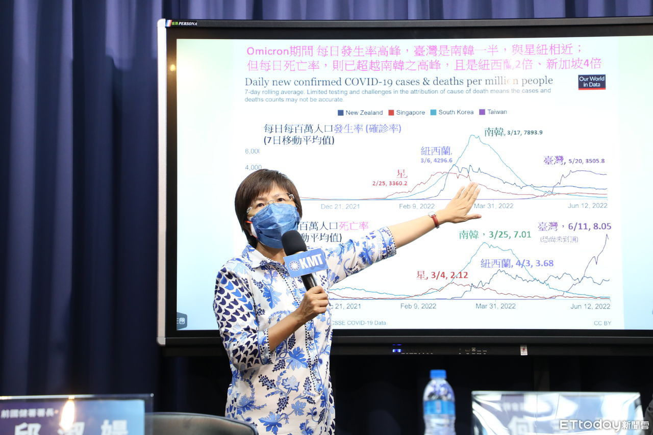 本土單月確診死亡人數破2000人。國民黨今(14)日召開記者會,前國健署長邱淑媞「新台灣模式」沒有經過專家會議、沒有訂定應變準備計劃,是一個違反傳染病防制法的枉死模式。文傳會副主委何志勇呼籲中央對確診死亡數不要「掩耳盜鈴」,逃不過「超額死亡」的檢驗。