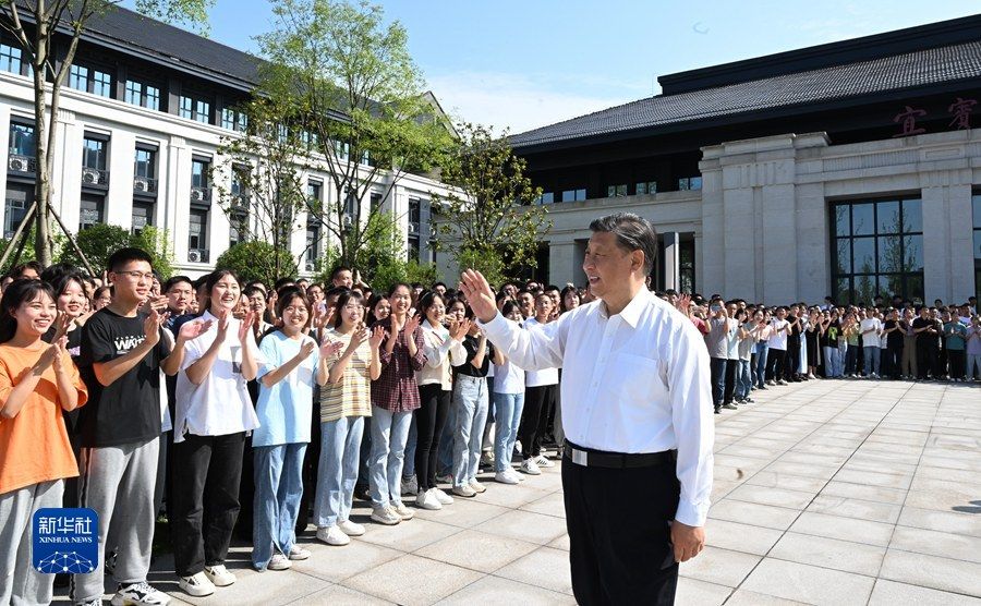 ▲8日下午,習近平在宜賓學院考察。(圖/新華社)