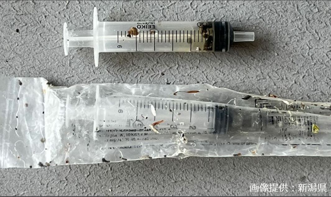 日本新瀉縣海邊近幾個月開始莫名出現大量使用過的針筒,至今已經撈到至少533支針筒。而這些針筒長度約10公分,部分則被裝入寫有俄語的塑膠袋中。當地政府呼籲民眾,由於針筒可能裝有有害物質,因此如果在岸邊發現可疑針筒,千萬不要觸碰,並立即與當地政府聯絡。