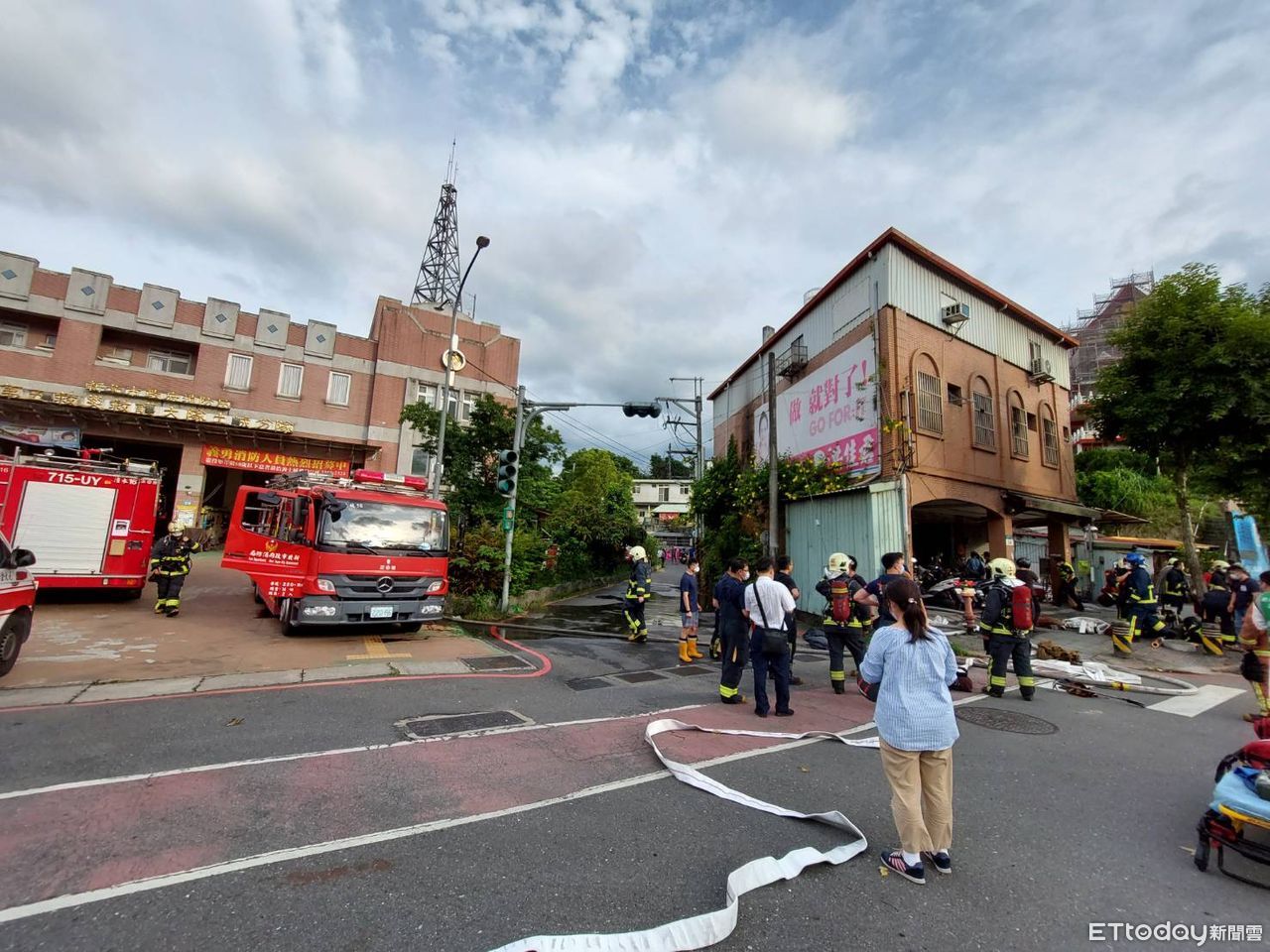 ▼消防隊正在訓練,恰巧遇上隔壁民宅火警,趕緊出動救援。(圖/記者陳雕文翻攝)