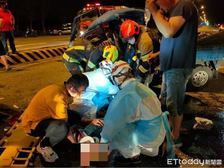員警趕赴車禍現場發現,肇事小貨車經撞擊,車頭嚴重變形,駕駛卡在駕駛座上無法動彈,車底下滿是鮮血,經警消人員破壞車體後才將駕駛救出,檢視發現駕駛除右手及左腳粉碎性骨折,頭部及身體也有多處擦挫傷,由救護車送往榮民醫院初步急救後再轉送慈濟醫院。