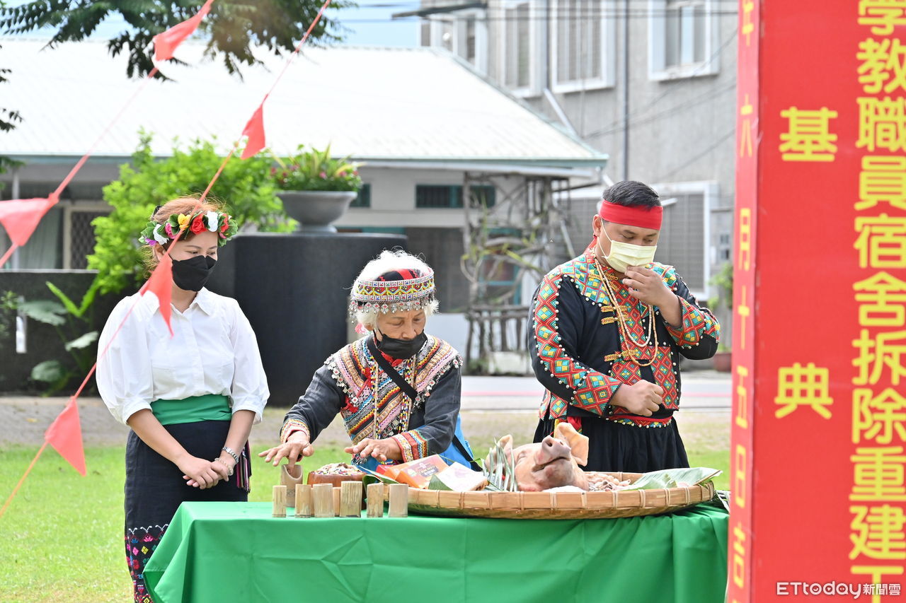 現場有多位貴賓及校長一同獻上祝福,並由海端鄉巫師胡金娘用傳統布農族祝禱方式為教職員宿舍拆除重建工程祈福,盼工程一切順利,能為海端國小留住優質教師,為孩子打造優良學習環境。