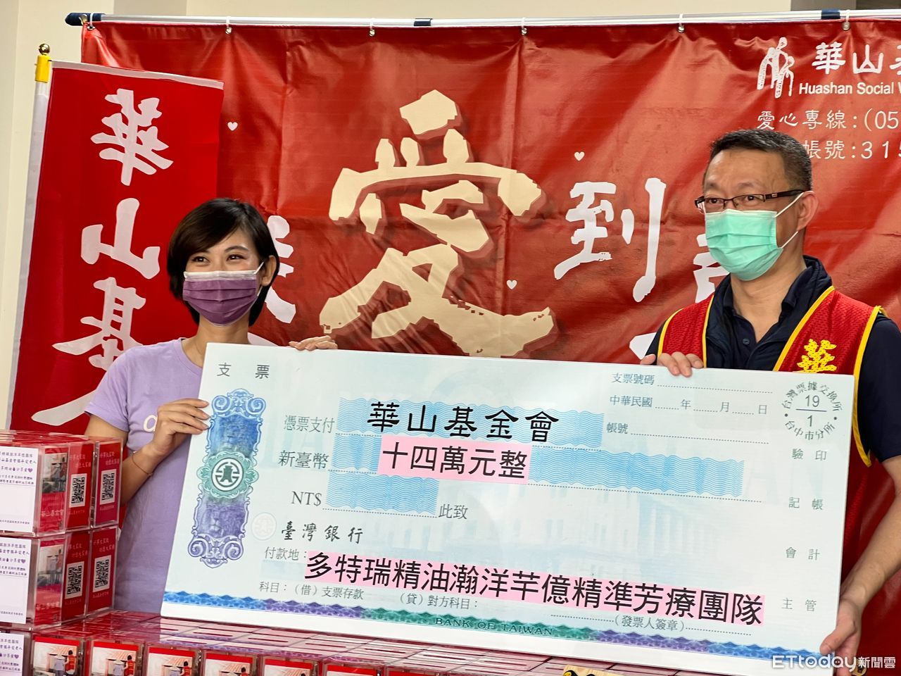 李冠儀表示,自己過去從事護理照顧,因此對於長者照顧很有感觸,投身精油事業後,發現為長輩抹油可以讓對方放鬆、有效安撫情緒甚至彼此都被療育。而精油是愛的事業,認同華山也是助人,所以團隊成員認領100組愛心功德桶,並以支票方式將款項捐贈給華山,總共募集14萬餘元。