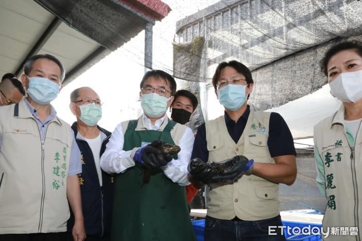 台南市長黃偉哲關心台南石斑養殖現況,因應近日中國以政治化方式暫停台灣石斑魚輸入中國,由農業局長李建裕陪同,前往郭俊瑋位於學甲區的優質石斑魚養殖場給予聲援鼓勵,黃偉哲親自拌餌料、餵食,並購買石斑魚。