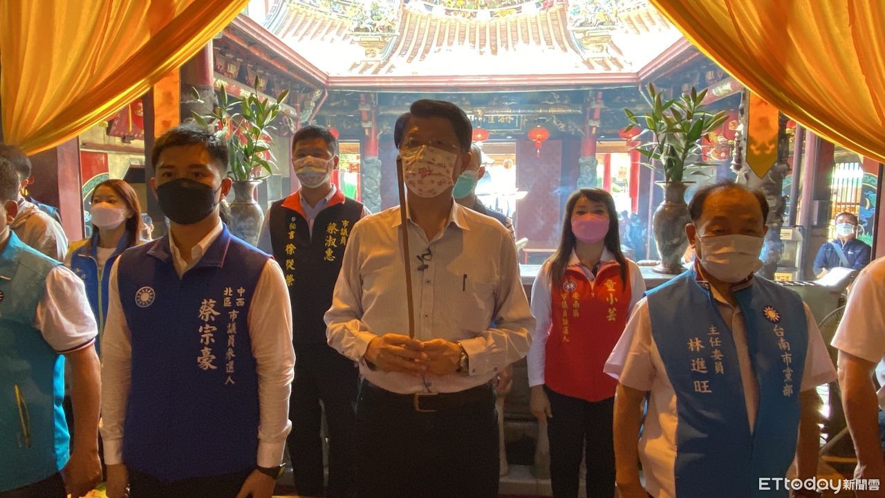 ▲台南市長黃偉哲,針對國民黨台南市長參選人謝龍介「百廟祈福」活動表示祝福。