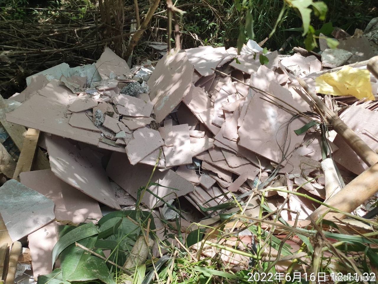 嘉義縣警局中埔分局義仁所員警,於16日中午12時許獲報,有人在嘉義縣中埔鄉灣潭村1處農地非法傾倒廢棄物,經警方及縣府環保局人員到場稽查,發現該處周遭均堆置含石綿廢棄建材等廢棄物,現場一林姓地主正僱工人挖洞,辯稱是要挖魚池養蝦,警方將2人依違反廢棄物清理法,函送嘉義地檢署偵辦。