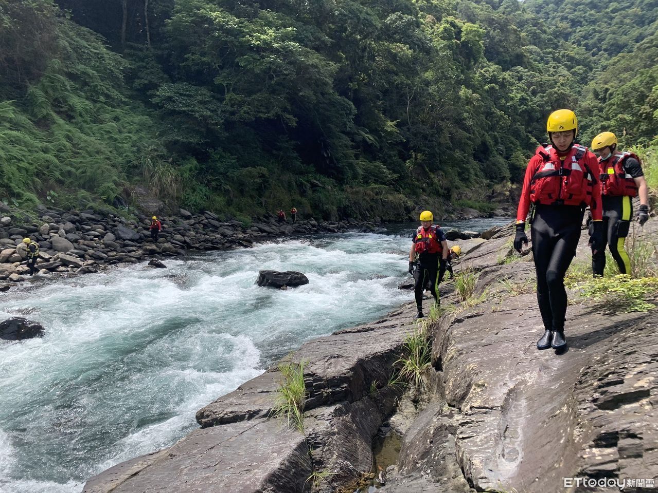 新北市烏來區信褔路11.5K (南勢溪谷)18日早上7點多驚傳釣客遭沖走!據了解,有3人結伴在河岸釣魚,其中一名男子要跨越溪流至對岸時,不慎被水沖走,57名消防員全力搜救中。於中午12點在10K附近發現男子,但已無呼吸心跳,其妻子也已趕去現場。