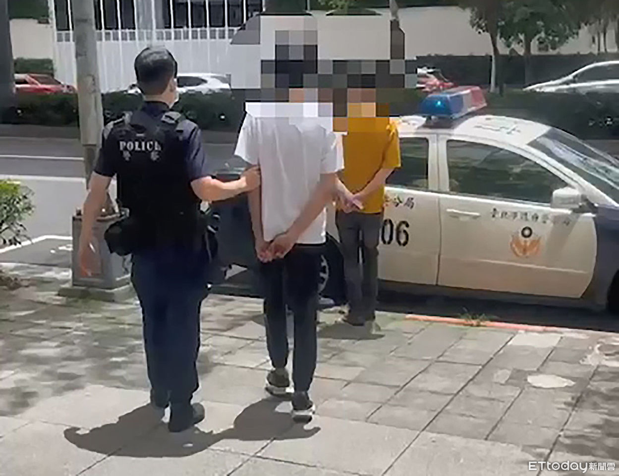 ▲14日凌晨6時許北市大安區忠孝東路旁發生酒客因誤會鬥毆案件,警方火速帶回涉案人。(圖/記者張君豪翻攝,下同)