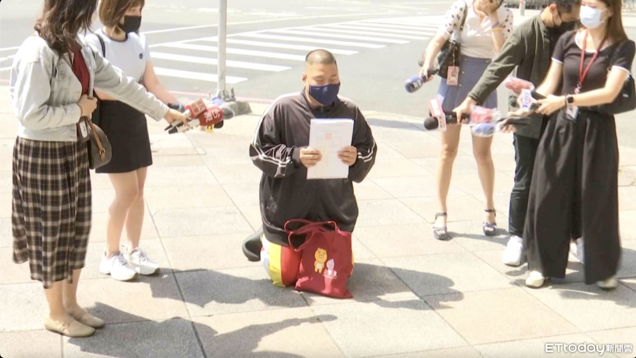 ▲璩姓男子的兒子下跪請求緝兇。(圖/記者吳奕靖翻攝)
