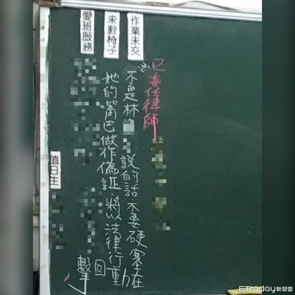 ▲林姓教師恐嚇學生「不會讓你們好過」,並且在黑版上寫下已委任律師。(圖/人本教育基金會提供)