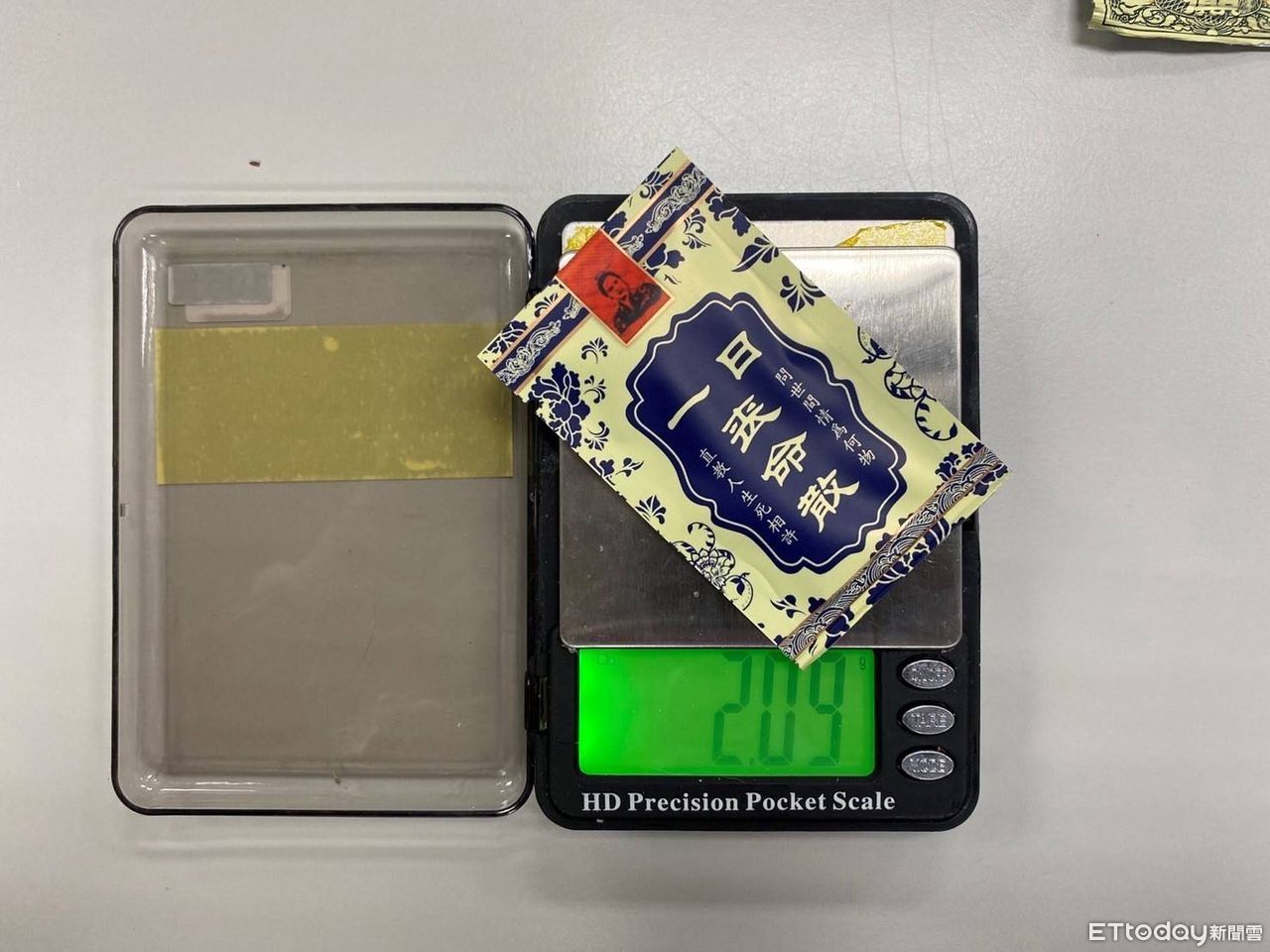 ▲販毒集團在毒品包上印上「一日喪命散」、「含笑半步癲」等花樣吸引年輕人。(圖/記者邱中岳翻攝)