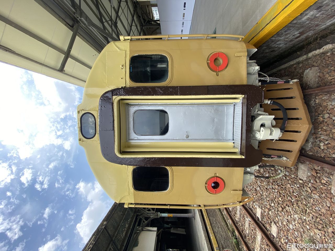 ▲台中驛鐵道文化園區展出EMU100型自強號,後方右側尾燈遭民眾破壞。(圖/台中驛鐵道文化園區提供)
