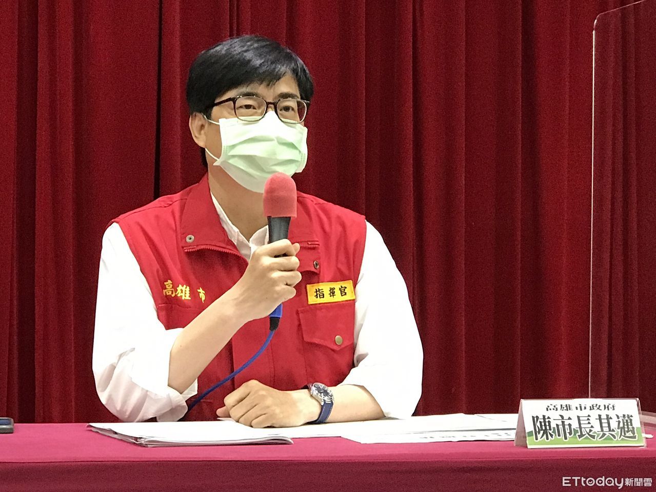 ▲高雄市長陳其邁說明最新疫情狀況。(圖/記者賴文萱攝)