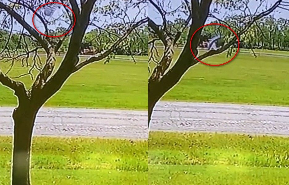 ▲附近住家監視器剛好拍到墜落畫面。(圖/翻攝自Twitter)