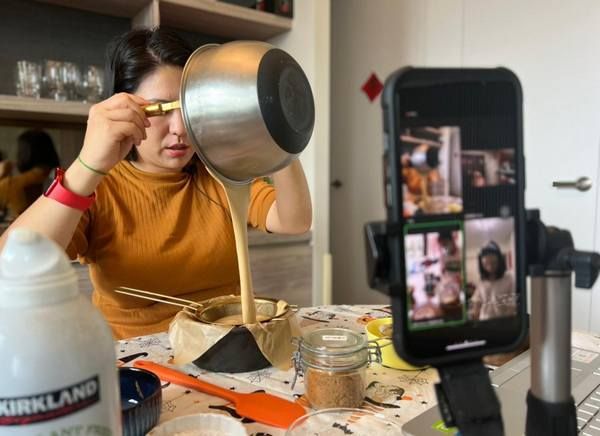 ▲張碩芳喜歡在線上和幾位好朋友,一起做巴斯克乳酪蛋糕。(圖/張碩芳服務處提供)