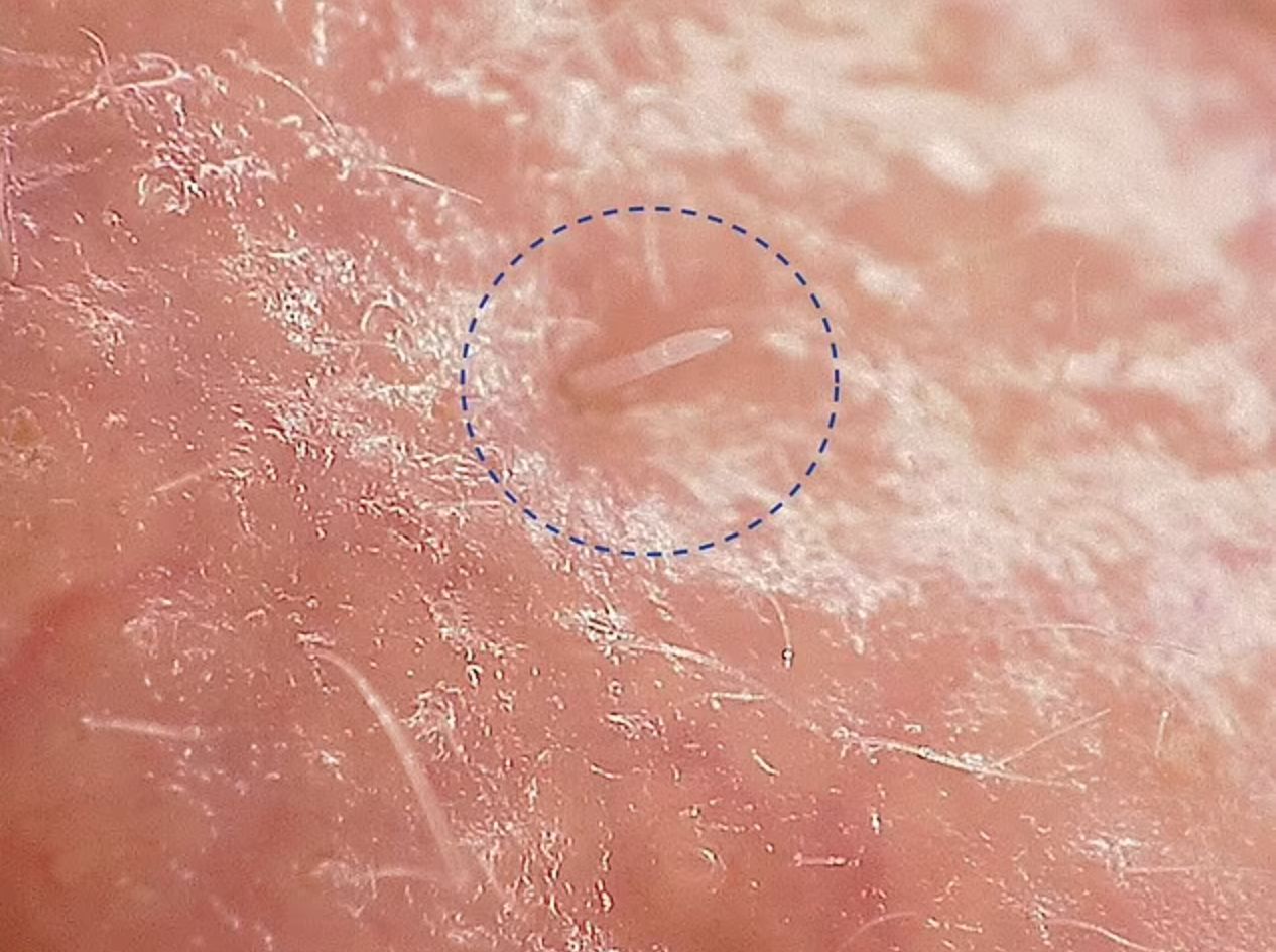 ▲微小的「毛囊蠕形蟎」夜間會在人類的臉上、乳頭上繁殖。(圖/翻攝自推特)