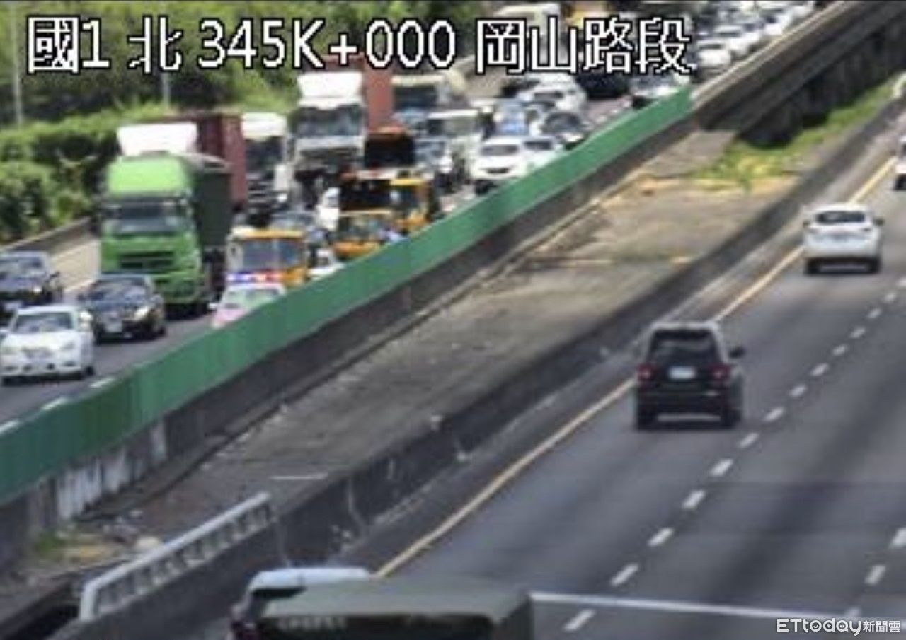 ▼國1南下4車連撞,稍早該路段車流紫爆。(圖/記者吳世龍翻攝)