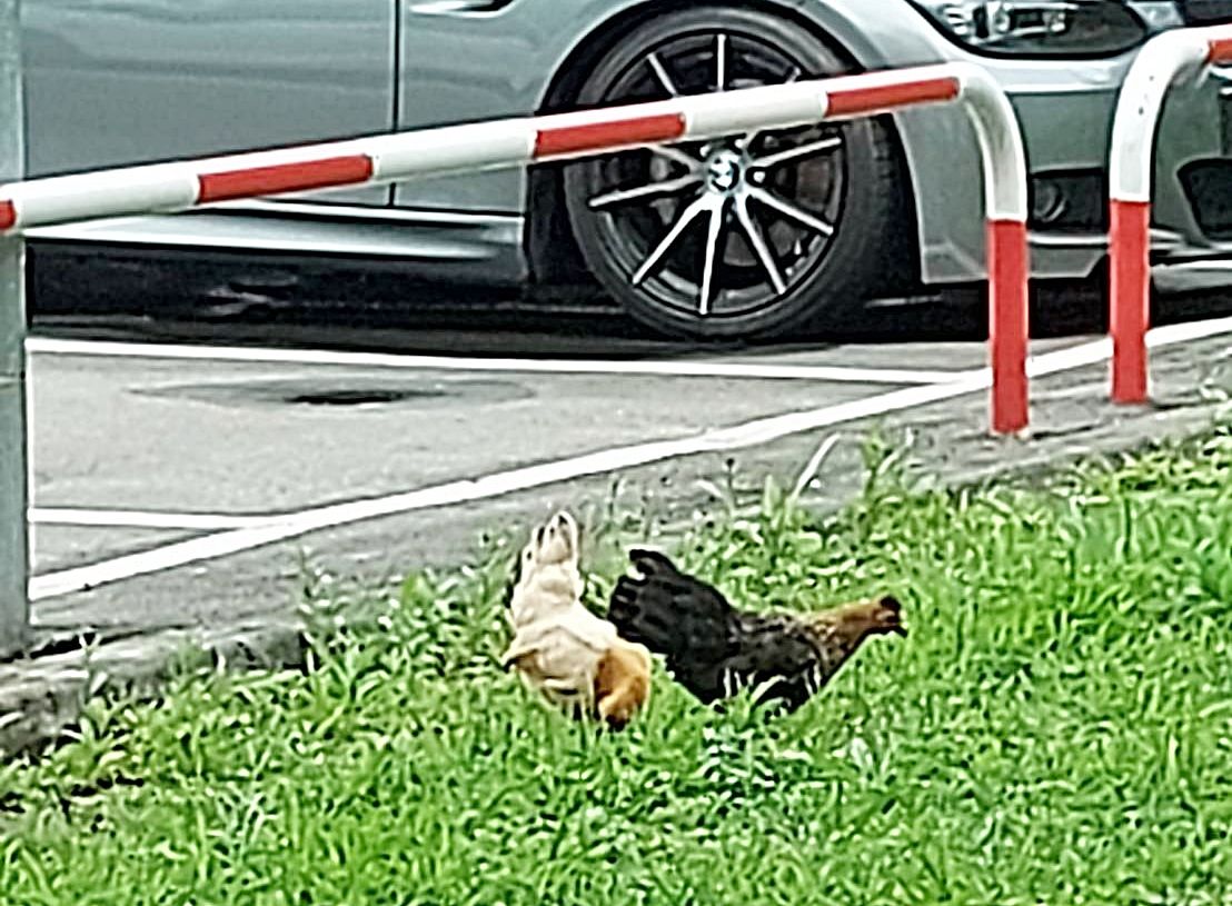 ▲桃園市中壢區蔡姓男子6月21日下午因放出寵物雞活動飛走3隻,竟持BB槍在環北路停車場射擊。(圖/熱心人士提供)