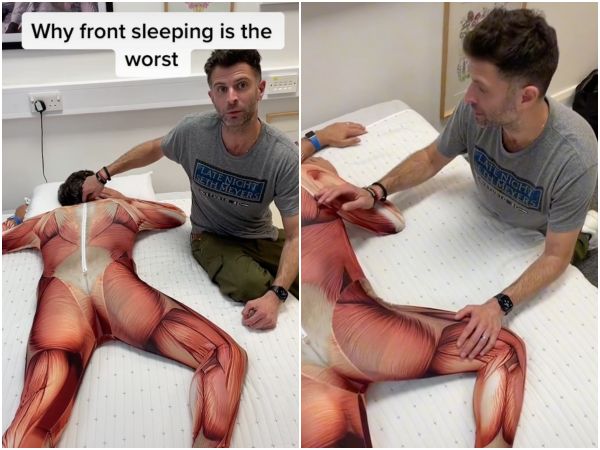 國外睡眠專家在TikTok影片中解釋為何「趴睡」是最差的睡眠姿勢,「你不會用這種姿勢看電視好幾個小時」,因為頸部長時間扭轉並不舒適,影片迄今突破2840萬觀看次數,引起迴響。另外,他也提供了解決辦法,只要調整成側睡,在雙腿間夾一顆枕頭,就能維持一夜好眠的舒適睡姿。