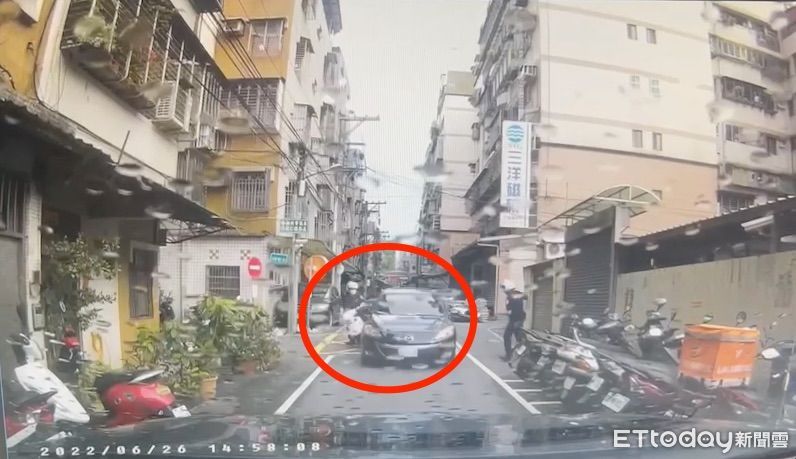 ▲竊盜通緝犯黃男倒車衝撞警用機車,警方朝車開2槍。(圖/記者陳以昇翻攝)