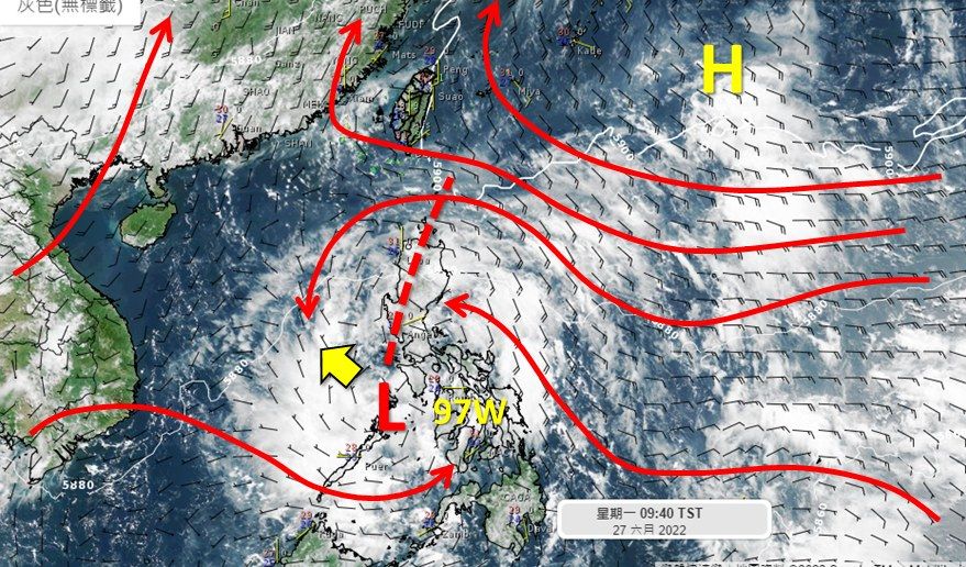 吳聖宇提醒,關於97W的預報是否出現變化仍值得持續觀察,如果北上的路徑比較靠近台灣,對週末天氣的影響就會更大一些,反之如果比較偏向香港以西到海南島一帶,對台灣的影像就會小得多,因此還是有變動的空間。