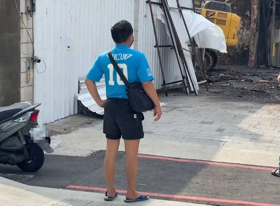 ▲新竹8死輪胎行28日進行拆除作業,屋主陳爸爸回到傷心地看最後一眼。(圖/民眾提供)