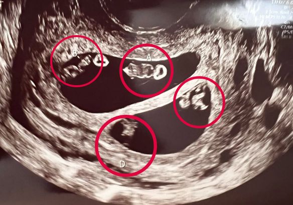 美國一名孕婦到婦產科產檢時,醫生卻被超音波上的畫面給嚇傻了,因為她懷了「兩對」同卵雙胞胎,這個在醫學上的機率僅7000萬分之1。