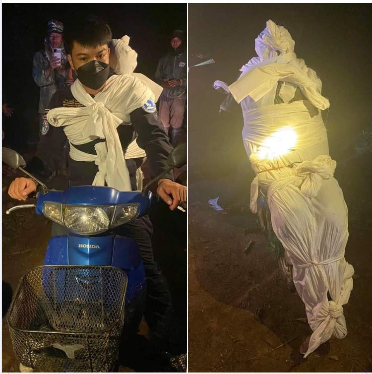 泰國警方日前在偏鄉的一處森林,發現一具腐爛的無名屍,但是由於當地地形崎嶇,搬運車輛抵達困難,一位救援志工就自告奮勇,把遺體包成像木乃伊之後,綁在身上騎著機車,走了7公里的山路,將遺體運出當地。