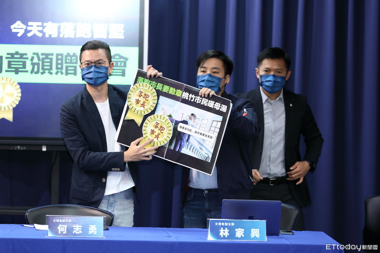 ▲國民黨召開「新竹桃園美利堅,市民協尋落跑堅-林智堅欺騙市民戲碼大公開暨落跑勳章頒贈會」記者會。(圖/記者湯興漢攝)