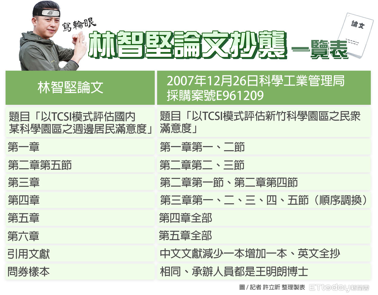 新竹市長林智堅被民進黨徵召參選桃園市長,但被國民黨台北市議員王鴻薇踢爆,林智堅碩士論文涉嫌抄襲。王鴻薇5日上午召開記者會,痛批林智堅2008年7月發表的中華大學碩論,與2007年12月科學工業管理局發標的委辦案結案報告幾乎一樣,甚至連錯字都相同,「抄好抄滿的論文抄襲!」