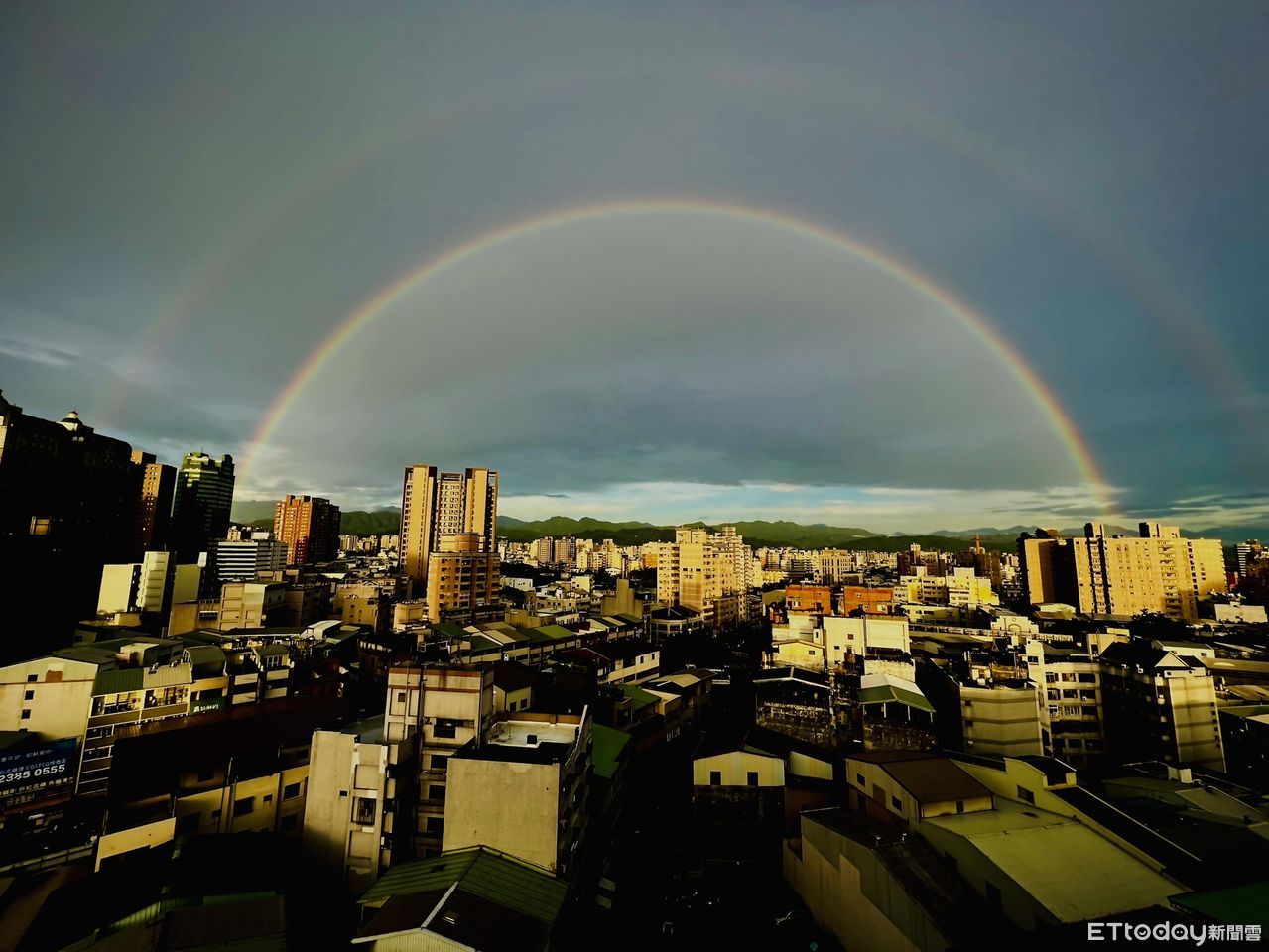 台中市5日雷雨過後,不少人抬頭一望,就看到超大弧度雙彩虹,驚喜不已,紛紛拿起手機拍下PO網,彩虹美照瞬間洗版各社群軟體;另外還有資深影像工作者在自家頂樓拍下雙彩虹及遠眺玉山、玉山北峰景象,也讓網友們熱議。