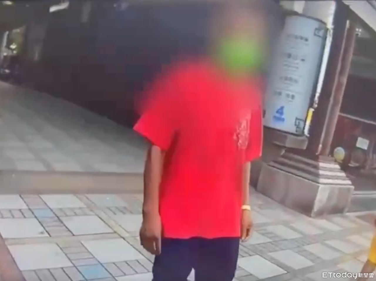 ▲身穿紅衣的男子抽菸被勸導,警方盤查還自豪「沒被通緝」,電腦跳出通緝當場臉綠。(圖/記者邱中岳翻攝)