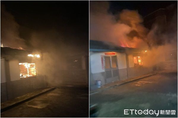 ▲台南市麻豆區油車里1處平房6日深夜傳出火警,消防人員接駁多條水線全力射水搶救撲滅,幸好無人員傷亡。(圖/民眾提供,下同)