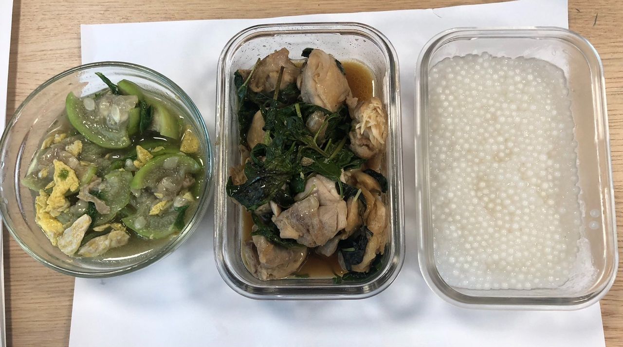 原PO在臉書「爆廢公社公開版」代為幫親友PO文,內容提到,對方的媽媽平時會幫忙準備便當,6日準備的便當菜色有絲瓜和雞肉,但第3個保鮮盒裝的卻不是白飯,而是一整盒「白色水晶球」,「發現有點怪怪的,但好像又沒什麼毛病。」