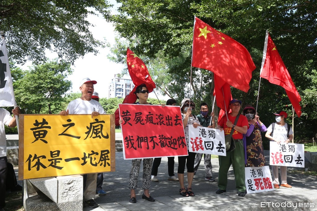 ▼愛國同心會成員在街頭高舉五星旗。(圖/記者屠惠剛攝)