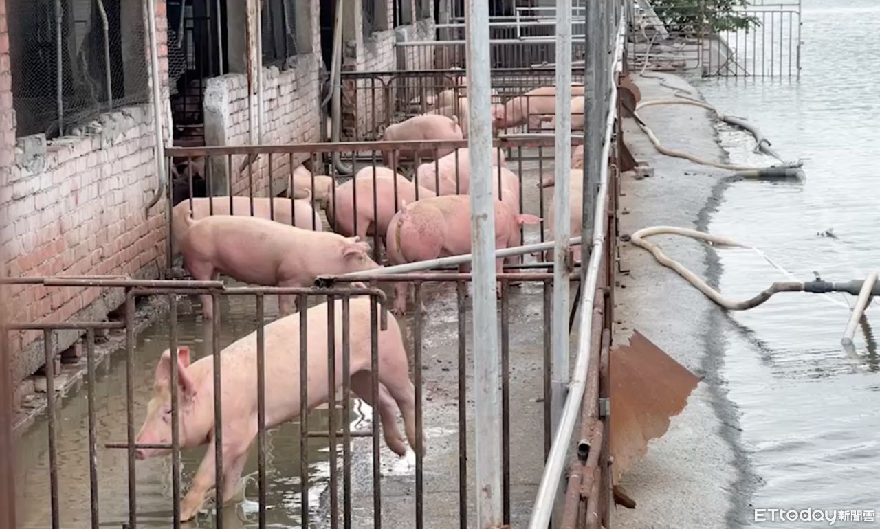 只不過,最近連續數日高溫,500隻豬兒遇到淹水,反而高興的戲水、玩耍,只有豬農在一旁愁眉苦臉。