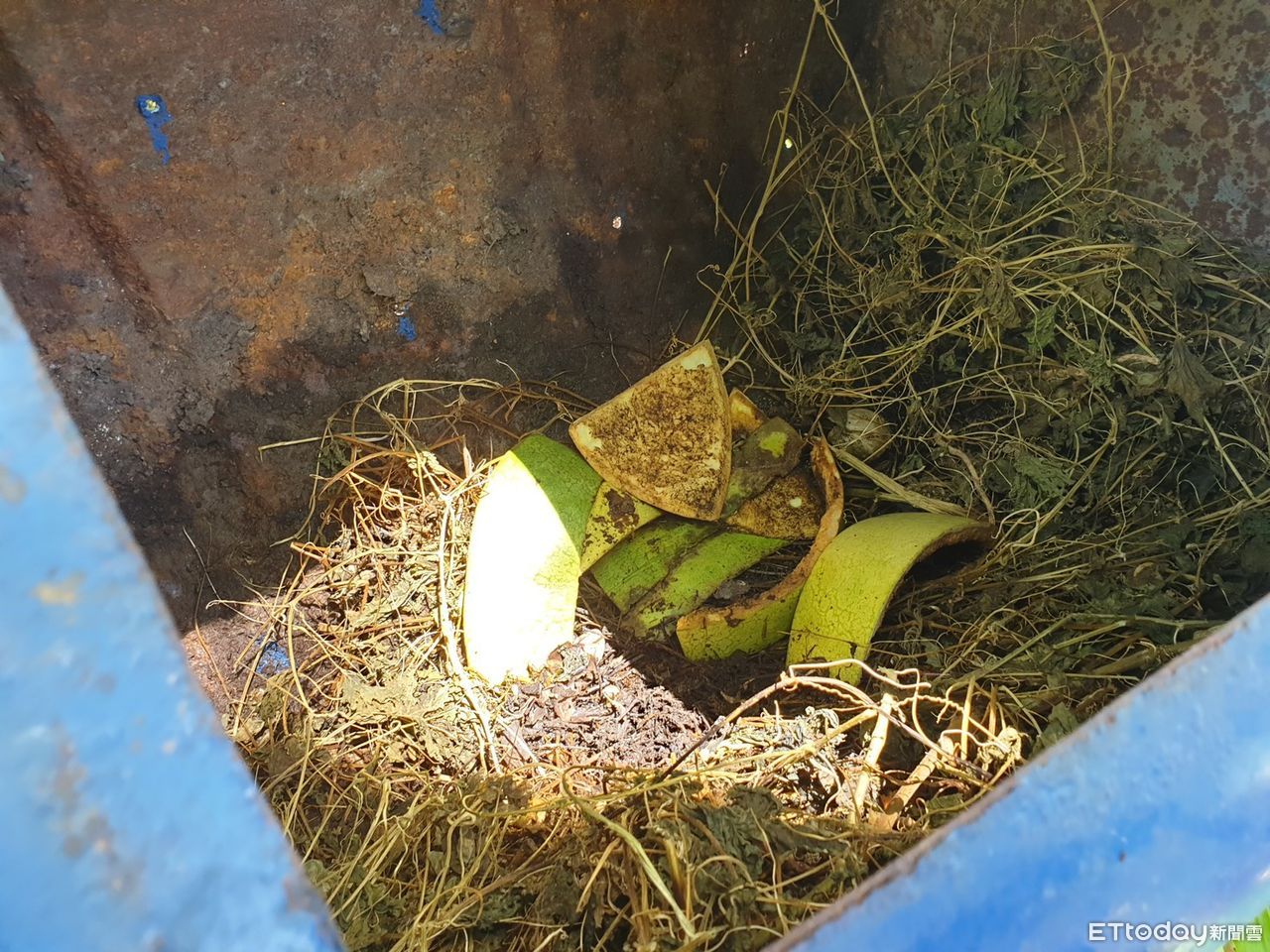 ▲藍色的桶子就是「生菜廚餘桶」。