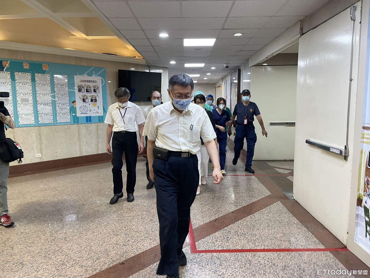 ▲台北市長柯文哲赴仁愛醫院關心台北市副市長蔡炳坤就醫情形。(圖/記者袁茵攝)
