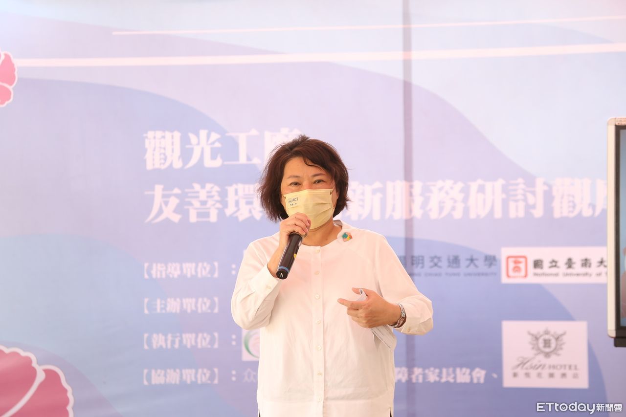 嘉義市政府12日在月桃故事館辦理「觀光工廠友善環境創新服務研討觀摩會」,市長黃敏惠也到場為多國語音智慧導覽以及觸摸式逃生避難圖開箱啟用,透過簡易的幾何圖形讓視障者可以輕鬆了解逃生出口;中英文友善語音導覽更是友善視障朋友、眼睛不方便的老人家及外國遊客的等多元族群的貼心服務。黃敏惠說,攜手產官學界齊心打造友善無礙的環境是我們努力的目標。