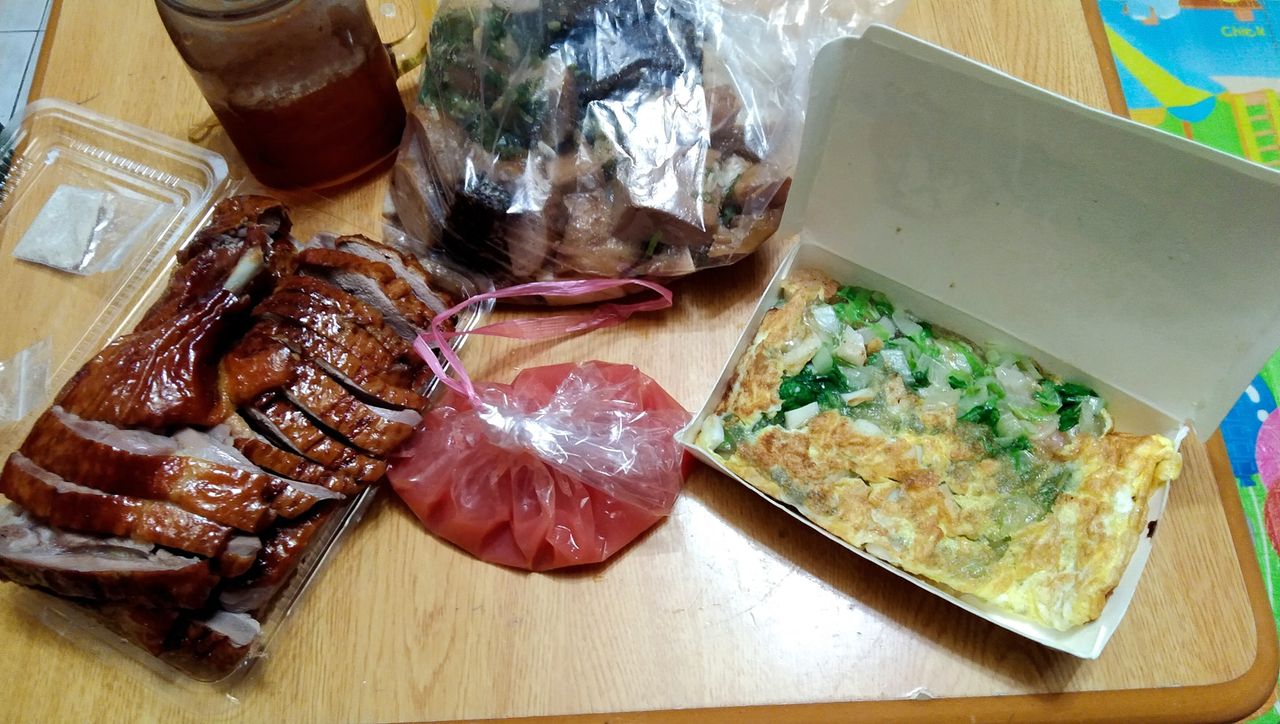 原PO在臉書「爆廢公社」的文章中提到,12日晚餐想吃蚵仔煎,因為要等店家備餐,就先去旁邊的菜市場逛一下,沒想到出來之後手上多了半隻烤鴨和一堆滷味,原本100元以內就能解決的晚餐,整整變成600多元,重點是還買太多吃不完,「我嚴重了我,這症狀應該沒救了,菜市場裡真邪惡。」