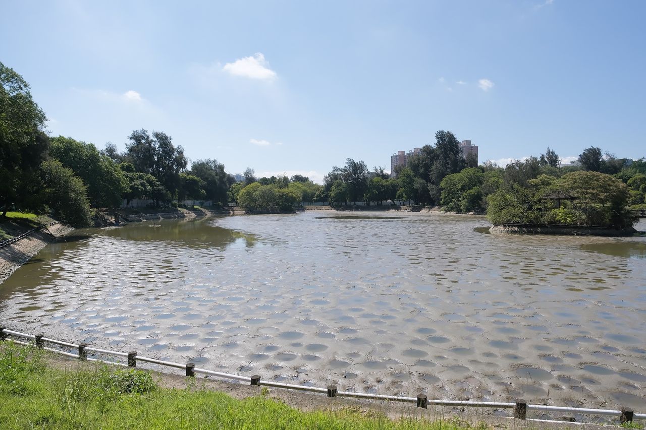 ▲清大成功湖日前進行整治工程,抽乾湖水後,在湖底出現數以千計的土坑。(圖/翻攝清華大學粉專,下同)