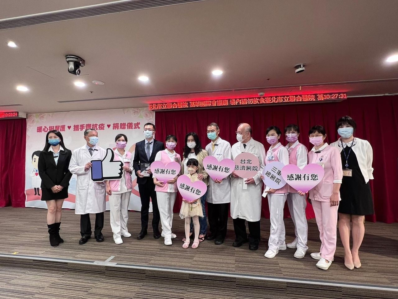 捐贈儀式中,獻花代表為確診康復的雙園國小一年級陳同學,祝福蔡副市長「坤爸」早日康復;同時五大醫院齊聚,包括臺北市聯醫、臺大醫院、榮總、三總、慈濟醫院,除感謝醫護人員外也向善心企業致謝,並祝福蔡炳坤早日康復。
